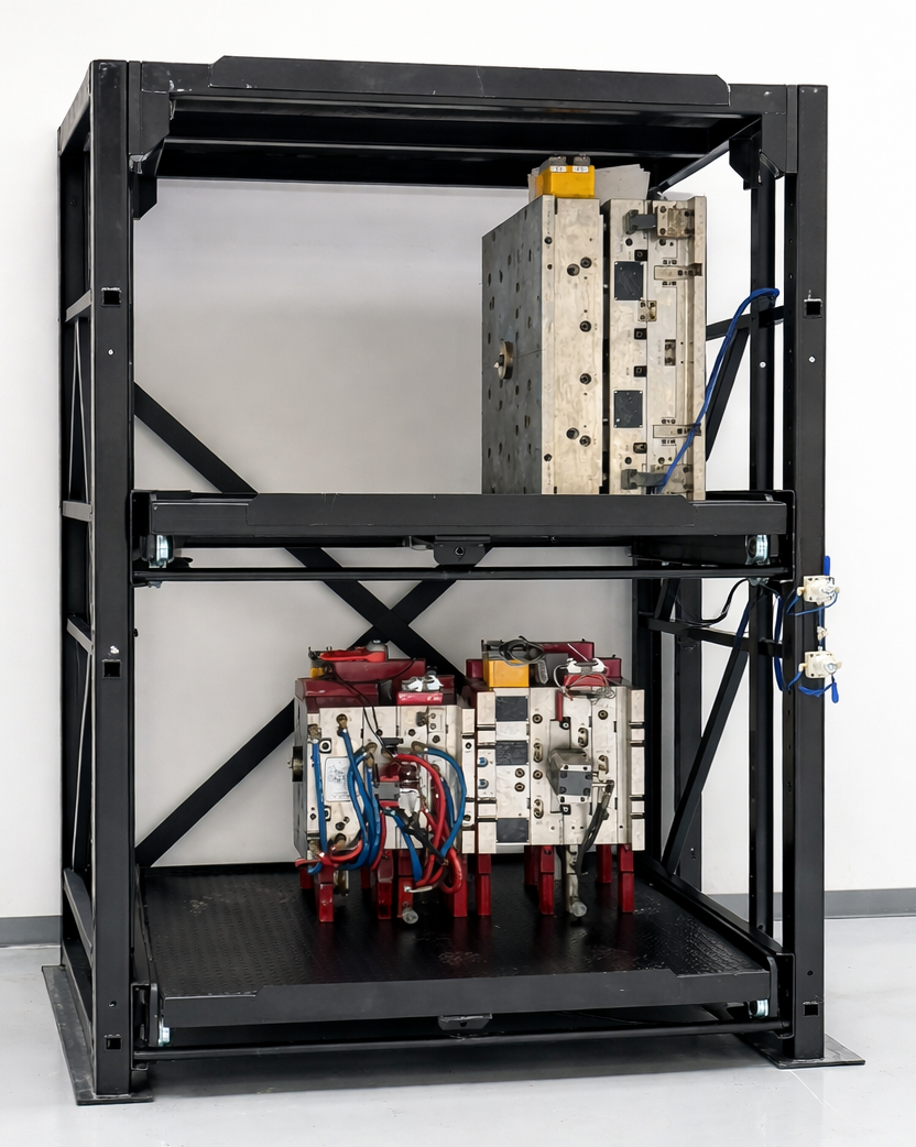 En JITSTOCK desarrollamos soluciones especializadas para el almacenamiento seguro, eficiente y organizado de moldes y troqueles, diseñadas para soportar cargas pesadas y facilitar su manipulación.